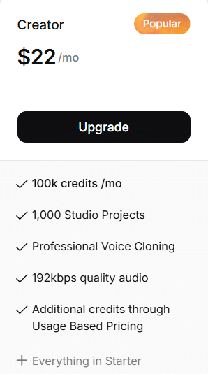 Elevenlabs Creator Plan